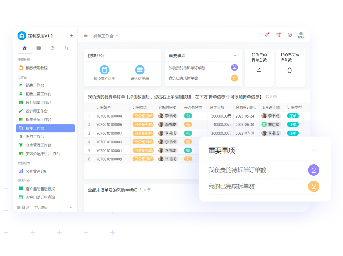 訂單360,隨時查看所有訂單相關客戶、設計、拆單、安裝等信息