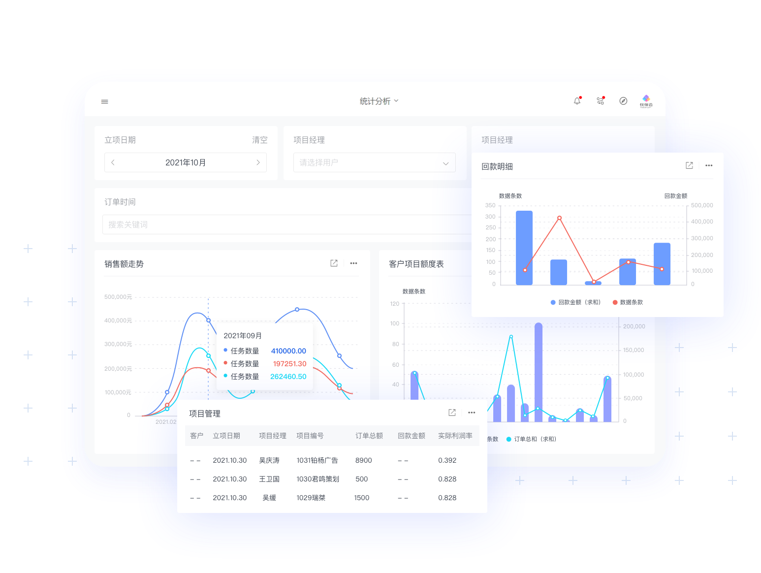 使用伙伴云之前,使用的是 Excel 表格記錄各企業(yè)項(xiàng)目需求,數(shù)據(jù)不規(guī)范,進(jìn)程也沒有提醒,導(dǎo)致服務(wù)跟不上,客戶紛紛出走;使用伙伴云之后,我司客戶續(xù)費(fèi)率從 1300 萬左右增長至 2900 萬左右,同比增長約 223 % ,新增客戶從 450 萬左右增長至 2100 萬左右,同比增長約 460 % ,利用伙伴云讓公司實(shí)現(xiàn)了真正的擴(kuò)張