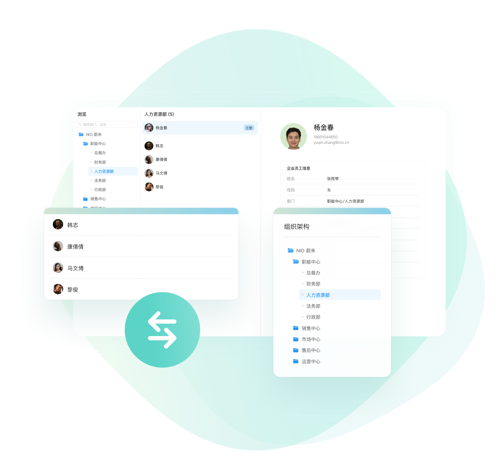 員工無需重復(fù)注冊(cè),組織架構(gòu)雙向互通